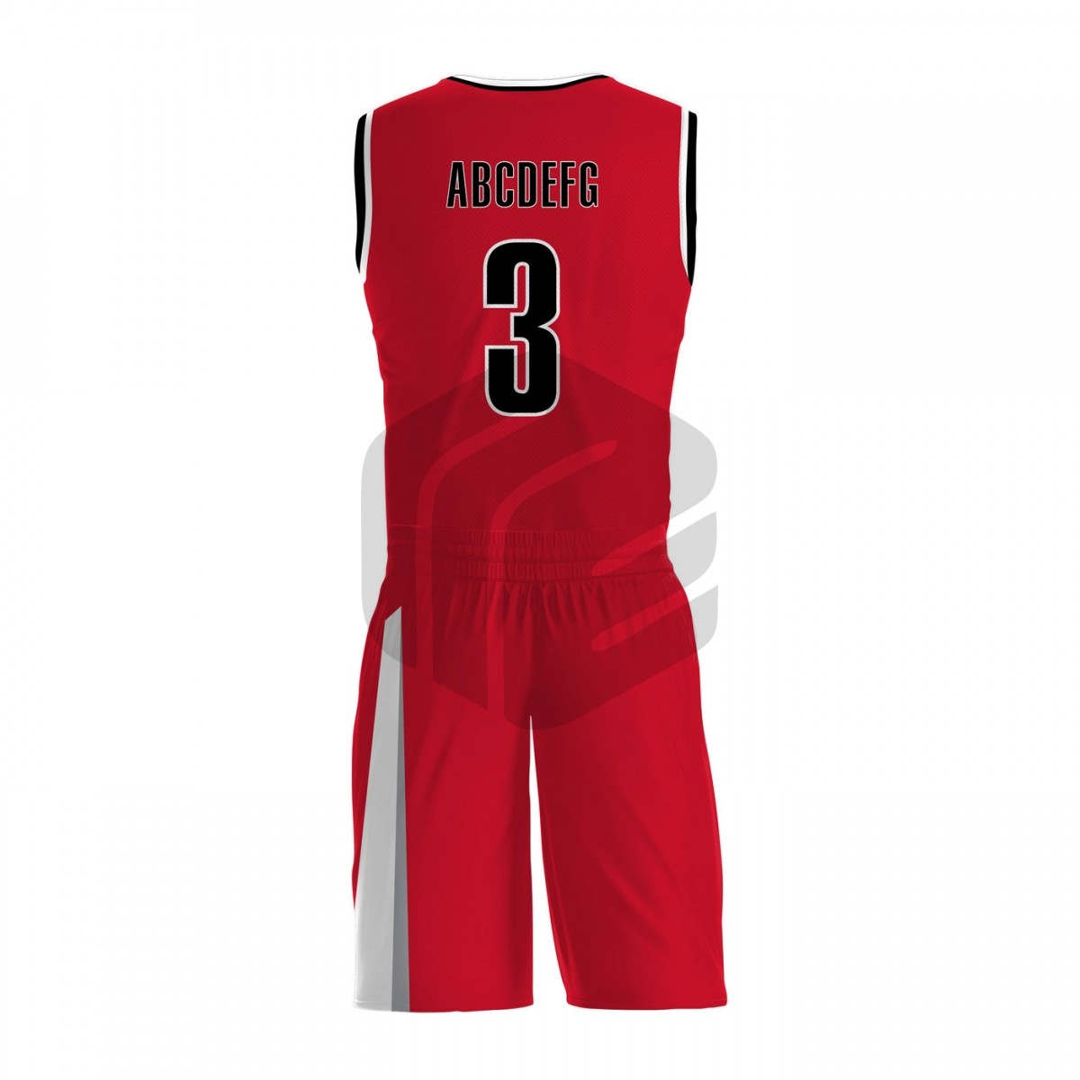 Select your own team colours, team name, and player name & number on this basketball uniform store product.