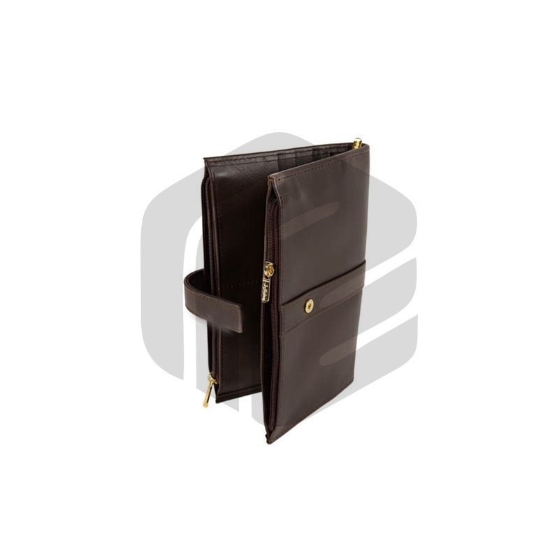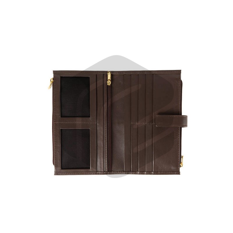 A more spacious format than the traditional wallet. This snap closure wallet has enough room to carry all your valuables. It has several compartments and small sections to hold all your cash and cards.