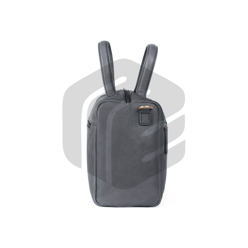 This simple bag is a great travel companion. Double hand carry handles along with a detachable shoulder strap makes this bag useful. This leather will age gracefully as part of being a natural product. The slight white embellishes show the genuineness of the leather and is for real connoisseurs of leather.